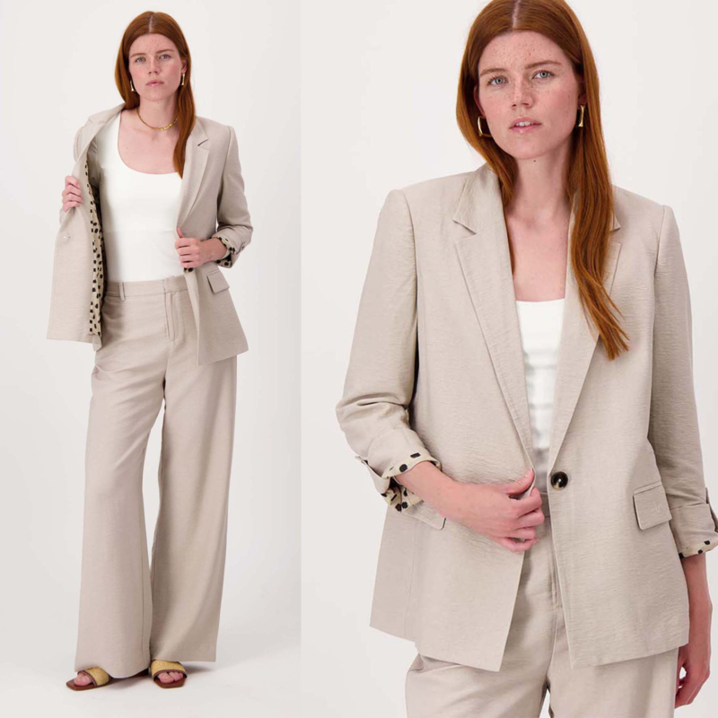 Dit Zusss damescolbert met oprolbare mouwen is een tijdloze must-have. Het colbert straalt casual elegantie uit dankzij de zachte sandkleur en de subtiele structuur van de stof. De mouwen zijn stijlvol oprolbaar, wat een speels accent geeft aan je outfit.